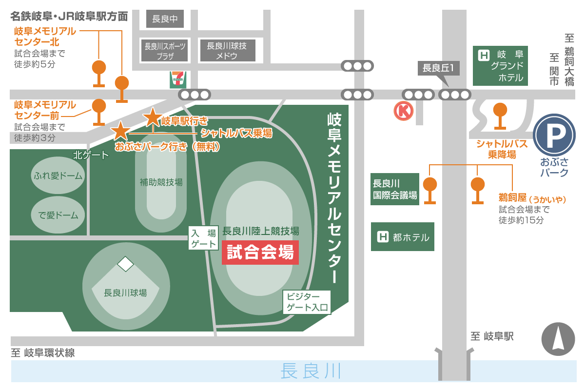 - 開設・運行時間等は試合によって異なる場合がございますので、FC岐阜公式サイトにてご確認ください。