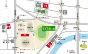 ※サンサンデッキ下駐車場への入庫は、正面(西ゲート)よりお願いいたします。岐阜メモリアルセンター様の警備員が立っておりますので、“障がい者手帳等”をご呈示ください。