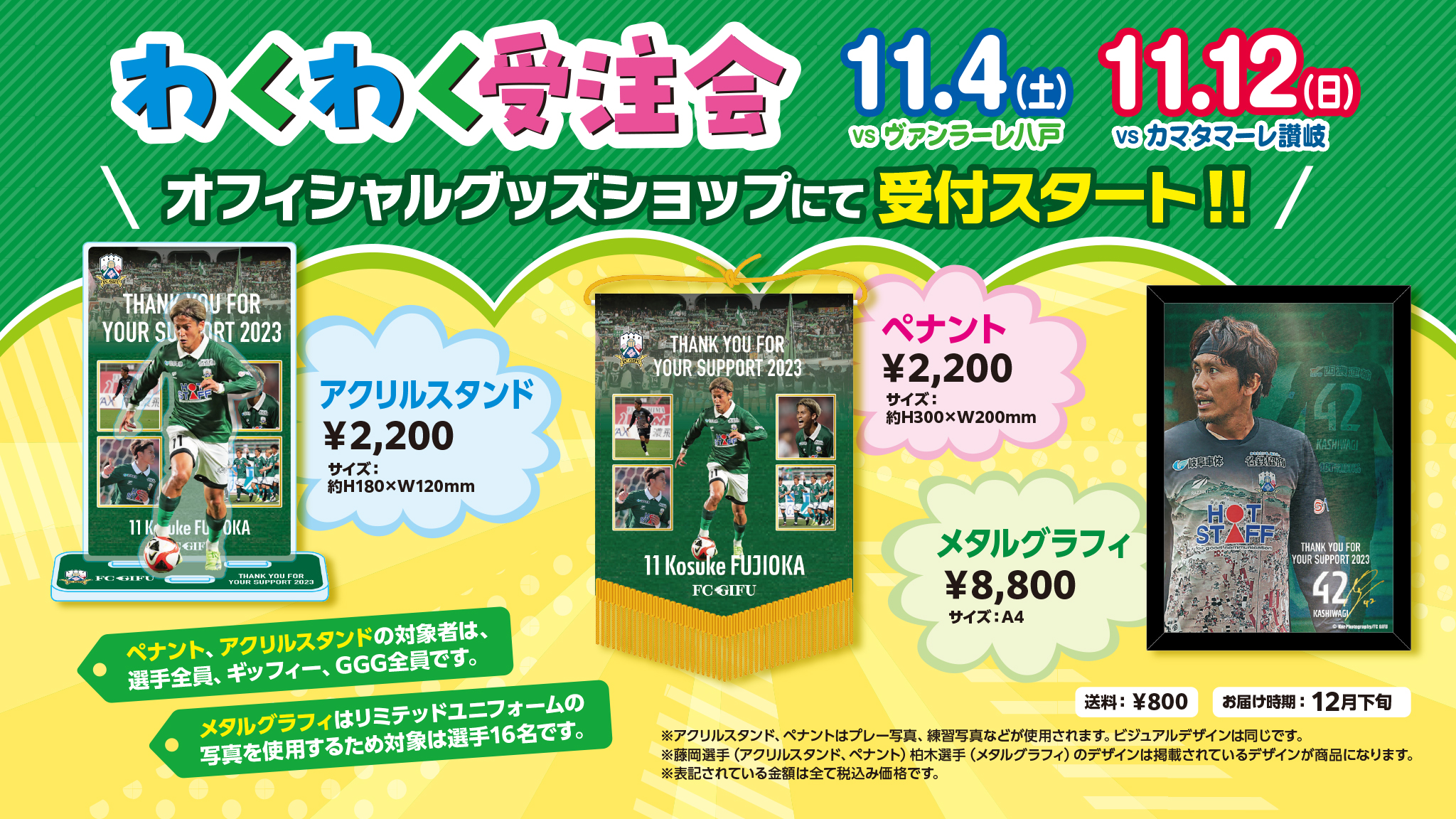 FC岐阜オフィシャルグッズショップにてFC岐阜グッズを3,000円(税込)以上お買い上げのお客様、先着200名様に「オリジナル選手カード」をプレゼント!