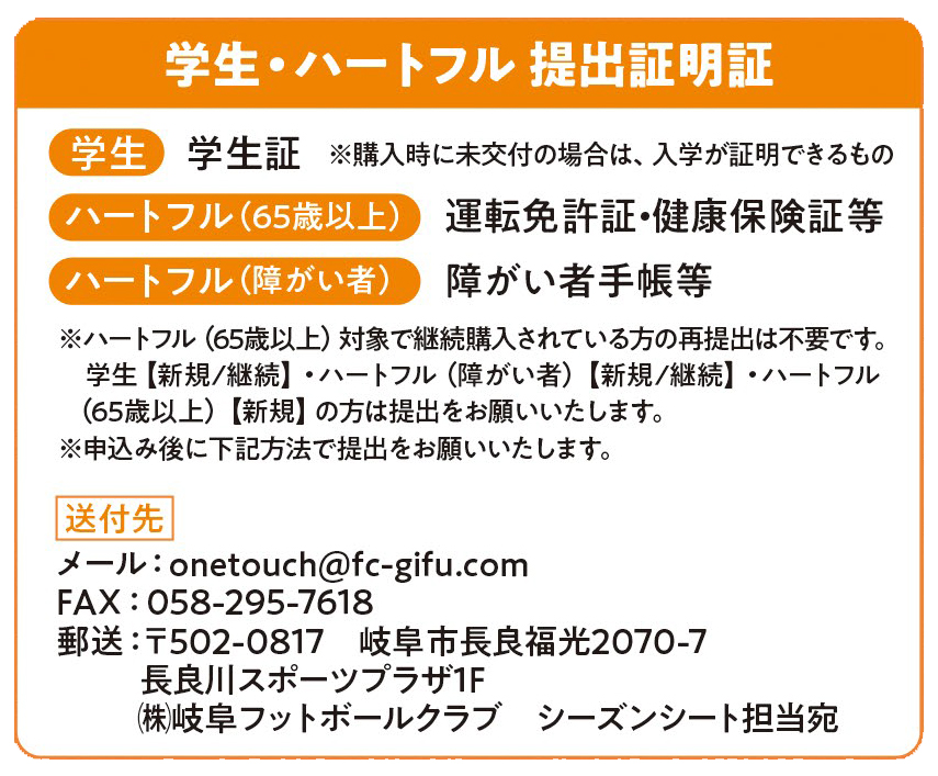 ※スーパーシートを購入される方は、申込時に希望するエリアをお伝えください。その後、FC岐阜よりご連絡させていただき、お席を確定させていただきます。