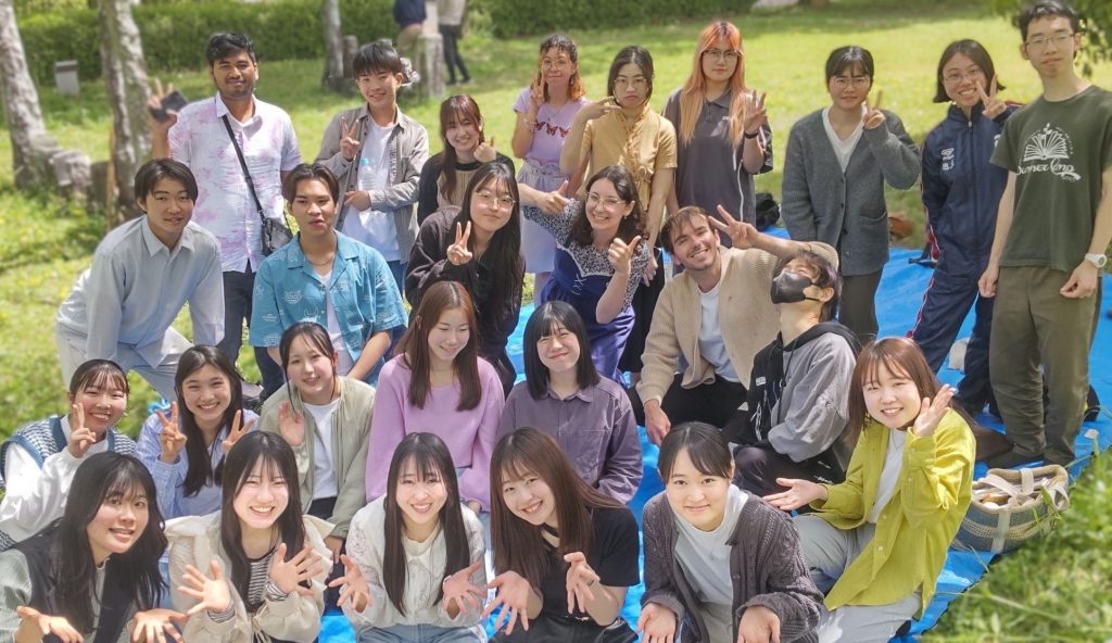 留学生と日本人学生が楽しく交流する、国際交流サークル!!毎週、学内の芝生でランチをしています。