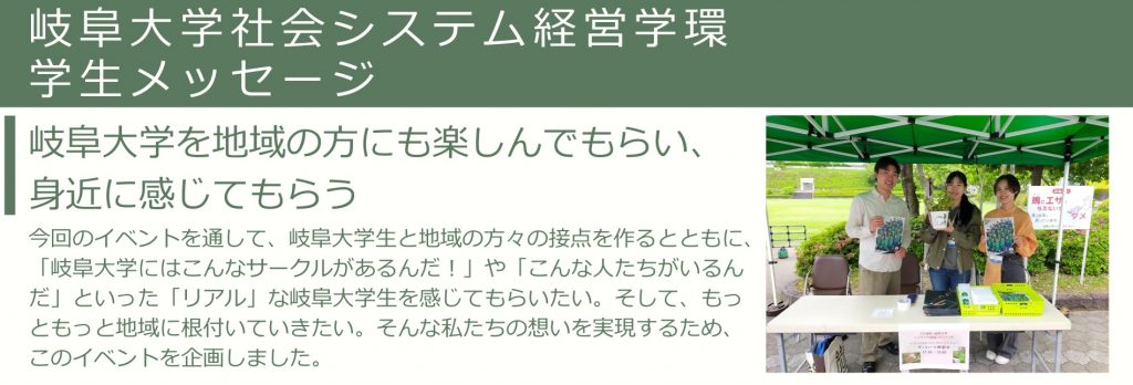 岐阜大学社会システム経営学環の学生とFC岐阜による1日限定の「岐阜大学まつり」!!