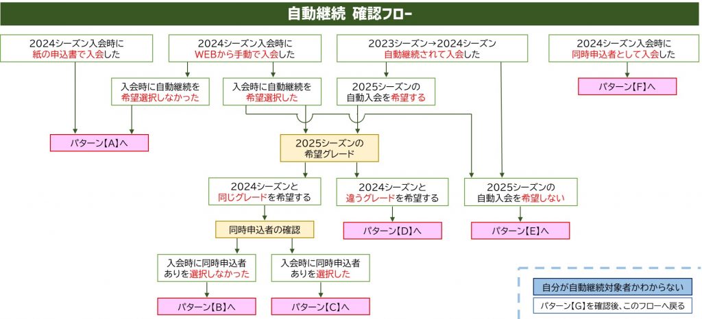 下記のフローをご参照いただき、2025シーズンのご入会に関するご確認をいただきますようお願い申し上げます。