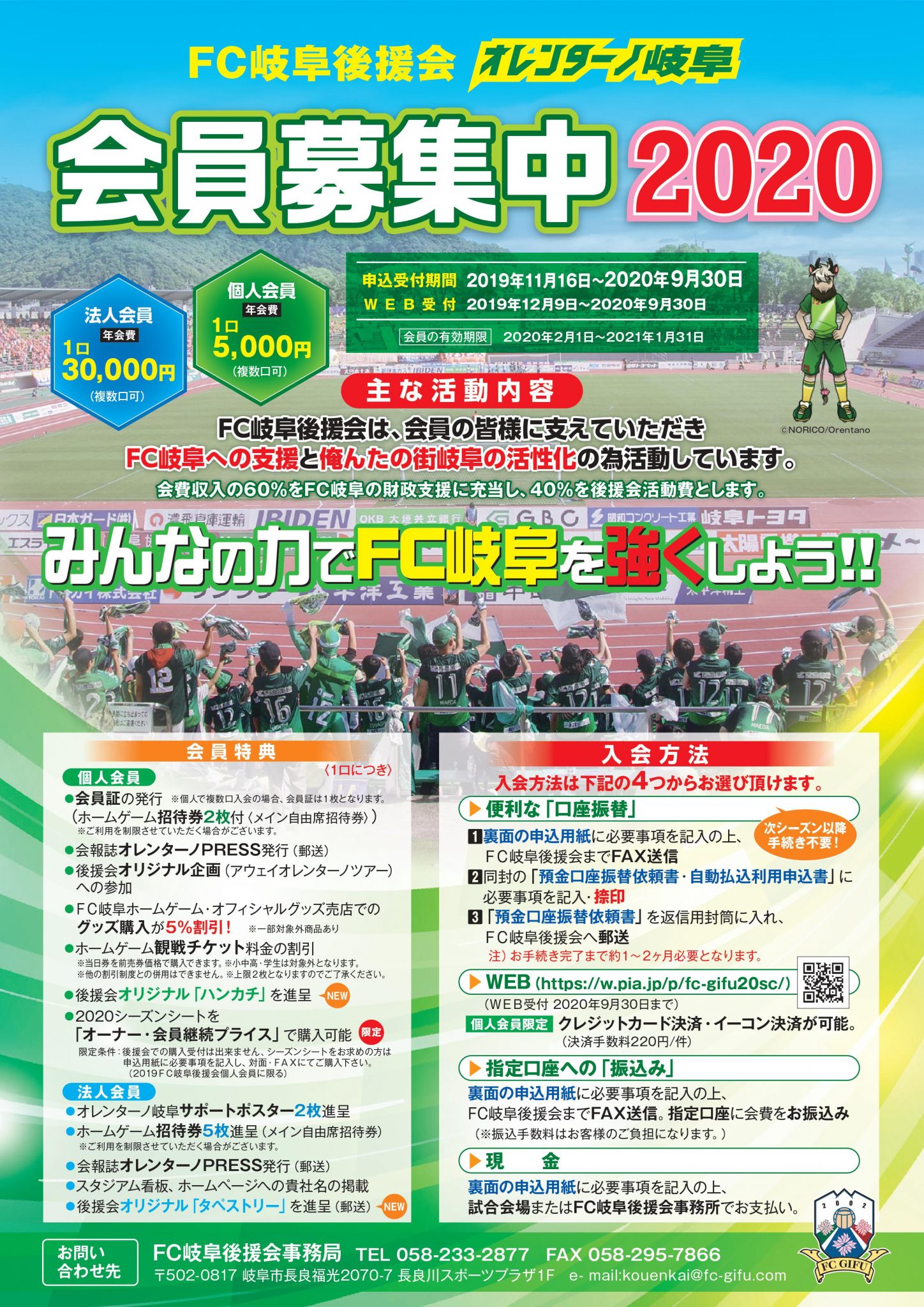 FC岐阜後援会(オレンターノ岐阜)の「2020後援会員」募集を開始いたします。