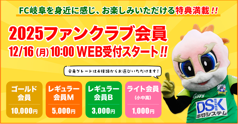 - ファンクラブは原則1シーズン、お一人様1回のご入会とさせていただきます。同シーズン中に複数回ご入会いただいた場合、事務局よりご連絡する場合がございます。