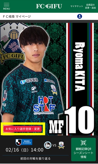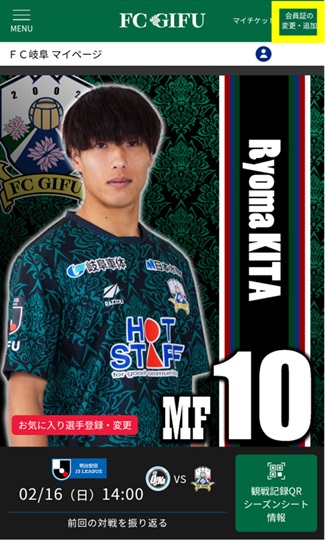 会員専用ページ『FC岐阜マイページ』