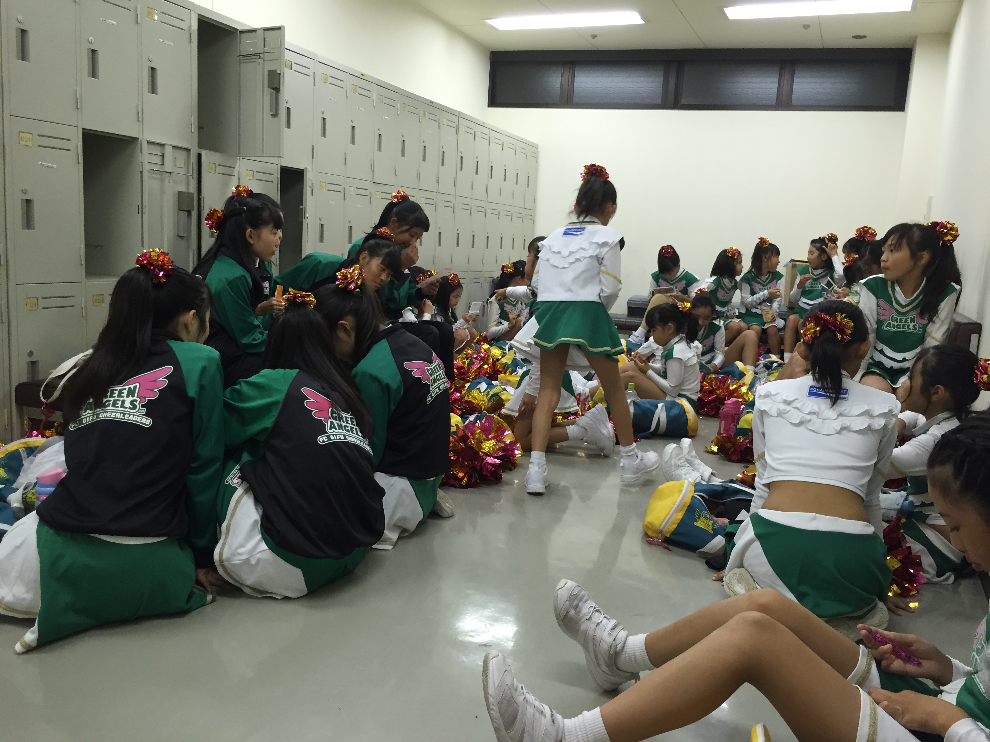そんなお出迎え組と並行して、事前練習に熱が入るGA3と4。今日の試合前演技はこの2クラスのみの合同演技なのです。久々の試合出演だからなのかモチベーションが高く、コーチもググッとやる気になります。