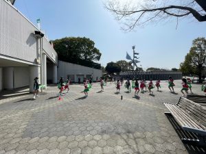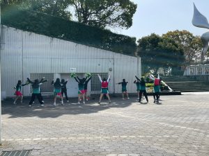 みっちりしっかり30分間のリハーサルを行った後、晴天でした(暑いぐらい)ので、外で練習の続きを。
