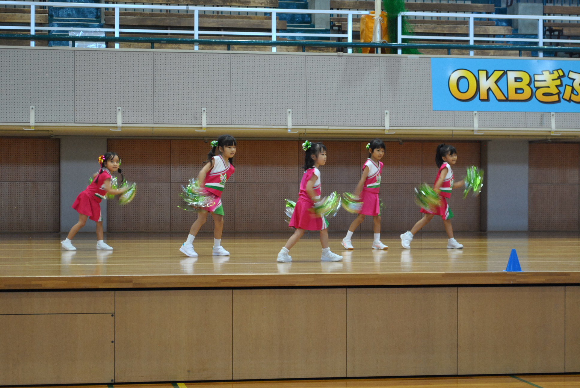 キッズクラスは2曲もパフォーマンス!!フラッグを使用した北風と太陽、ポンポンで可愛く、また、かっこいい技をlook up!で披露してくれました!