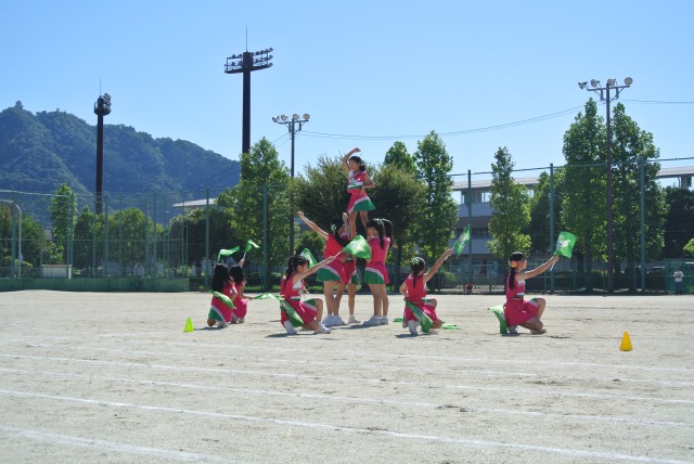 スポーツフェスティバルの最後の種目、大目玉の選手リレー前に3曲のパフォーマンスを披露しました。