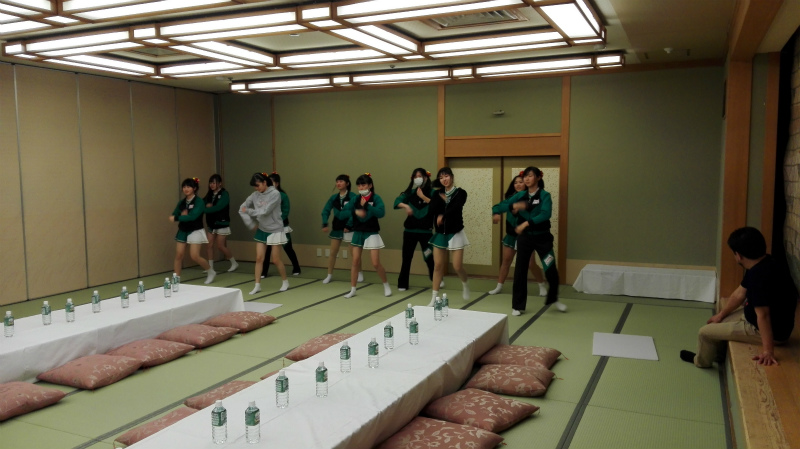 ですが、FC岐阜さんの配慮で、楽屋がめっちゃ広い和室でした。そこでフォーメーションや振り付けチェック。ありがたい。