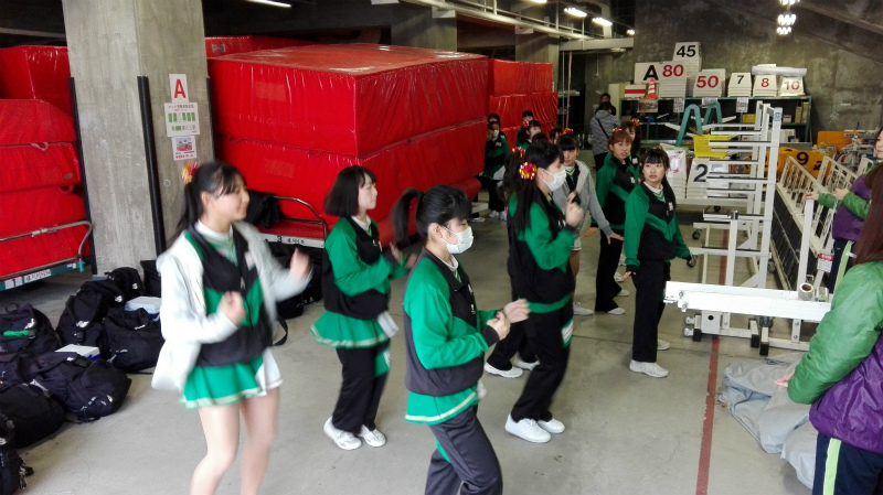 そして、選手入場花道を経て、ハーフタイムパフォーマンスの直前練習です。