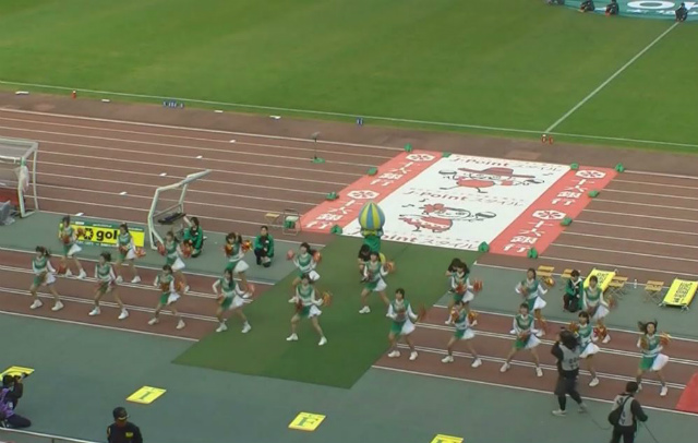 試合前出演は、GA3.4に任せられました。オネーさんクラスは受験生がたくさんいたり、新曲披露もあるので、そちらに集中します。開幕戦 皮切りの演技となります。1.2のヘルプはありません。