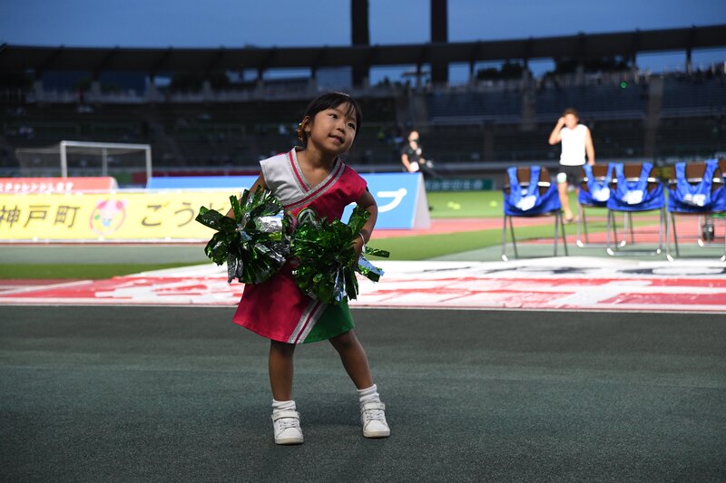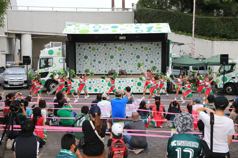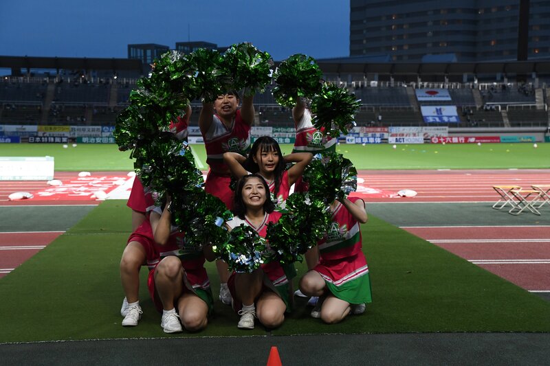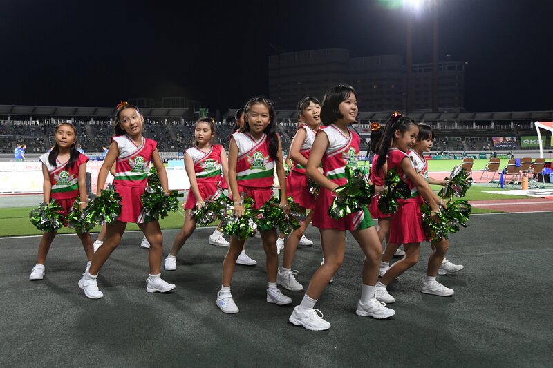 試合前とハーフタイムは、今が旬の「ワッショイ」と「#love(ハッシュタグラブ)」を踊ります。