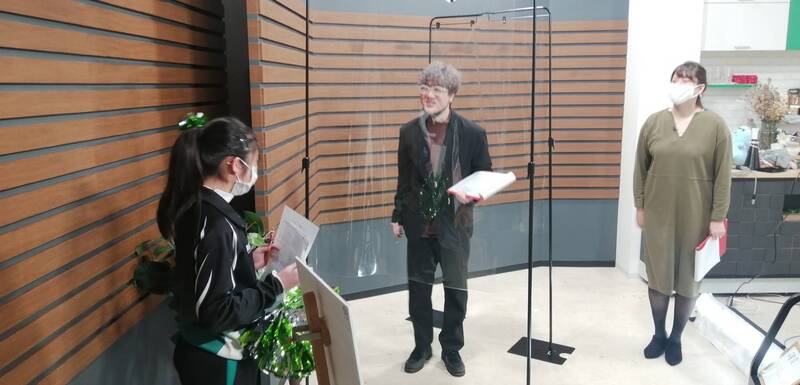 パーソナリティーの久世さん、竹枝さんに暖かく迎えられてのリハーサル。本人もそこそこ緊張している様子です。