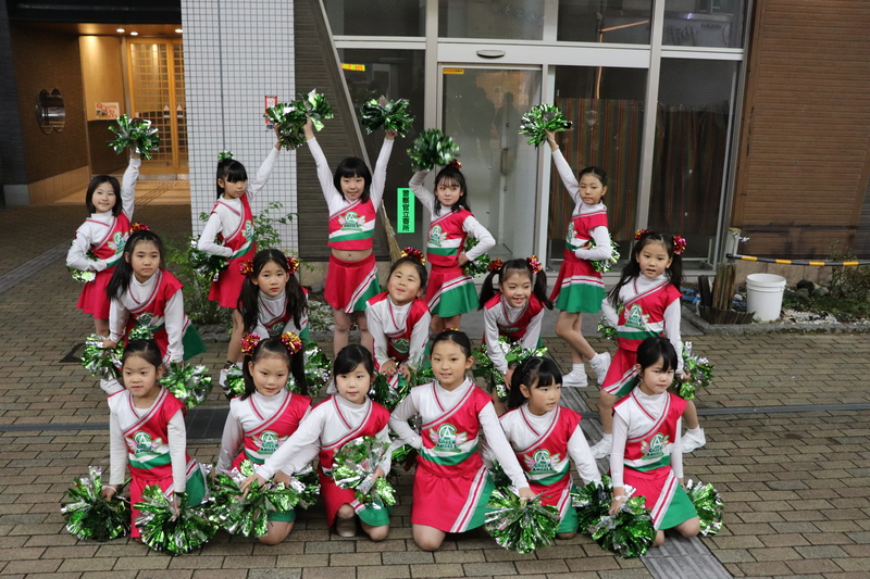 出演時刻が少し夕刻すぎでしたので、暗くなる中での屋外練習。雨が降らなくてよかった…。