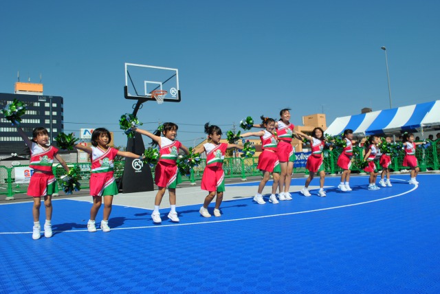 とっても良い天気の中始まったイベントは、3×3の試合以外にも、車椅子バスケの体験会やシューティングマシンのデモ体験など盛りだくさん!