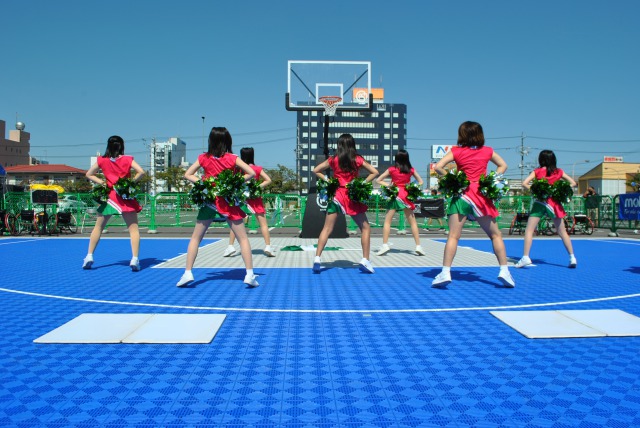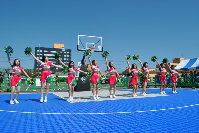 通常の5人制バスケットボールとは違い、コートは半分・人数も3人制の3×3特設コートが今回のステージです!