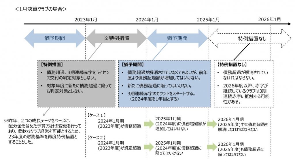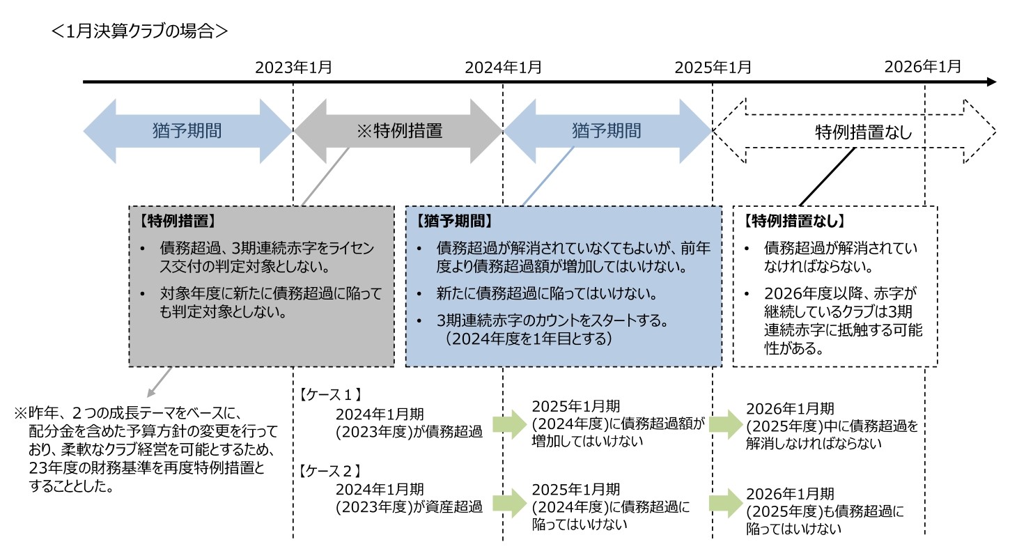 今回の訂正は2023年Jリーグ配分金等の予算変更があり、柔軟なクラブ経営を可能にするため、ルールの適用が2年延期されたことによるものです。