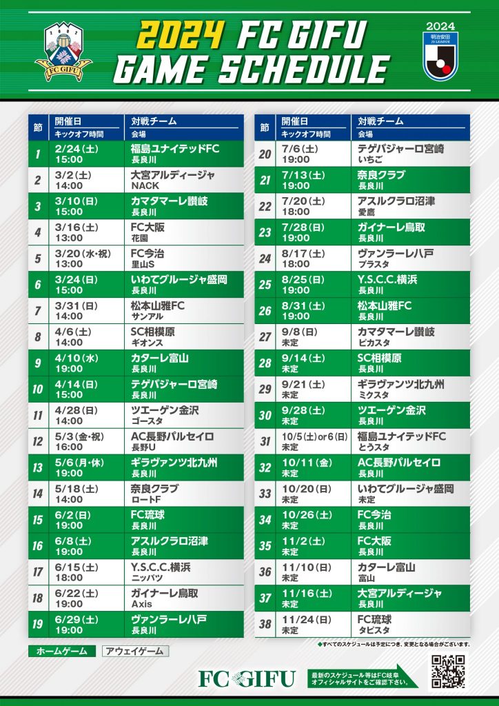 2024明治安田J3リーグの試合日程が決定しましたのでお知らせします。