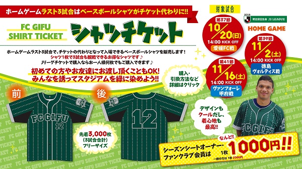 甲府戦の試合が観戦できて、さらにベースボールシャツもついて一般の方は1枚2,000円(シーズンシートオーナー・ファンクラブ会員は1枚1,000円)とお得な価格です!ぜひお買い求めください!詳細はこちらをクリック↓