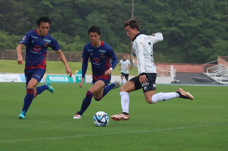 「相手が帰陣するのが速くて、サイドに振ってもそこから1対2だったり守備の陣形を敷くのが速かったので、そこに対してサイドの選手ともう少し球離れを速くしたり1対1を作り出すのが重要だと思います。うちの両ウィングに対して対策もしてくると思うので、相手の対策を凌駕して自分たちが勝ちきるチームになれるようになっていかないといけないと思っています。夏をどれだけ良い形で乗り切って成長するかが昇格に向けて大事なので、自分も含めてチームで高めていければ昇格できると思います」