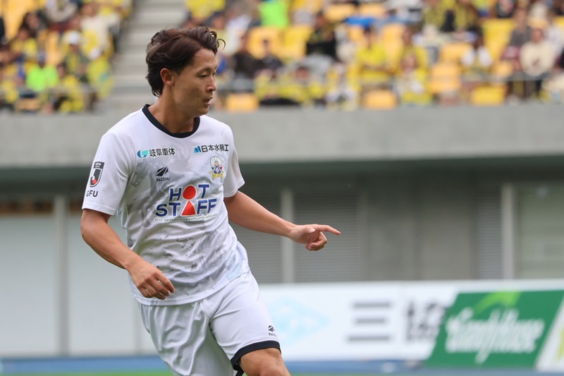 「プレッシャーをかけてきた相手の矢印を見て次の人はポジション取りをするので、そういったところが流動的に見えたと思います。そのようなチームとしての共有事項はみんなが実行してくれたと感じていますし、数的優位をどう作るかはポジション関係なく見つけた人が動いていけばいいと考えています。前半は岐阜のボランチがボールを持てた瞬間に、相手のボランチとセンターバックの間にボールを入れられることが少なかったと思います。ボールをコントロールする人ともらう人が『誰と駆け引きをしているか』をもう少し明確にすると、もらう位置も変わって、ボールが前に入るなど全体の質を上げることができるかと思います」