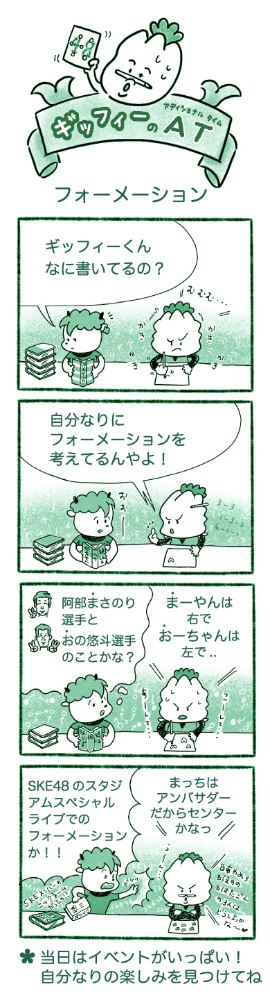 ギッフィーが考えてくれたフォーメーション(?)でSKE48シングルの選抜メンバーのまーやん、おーちゃん、を左右に町センターの曲も( ・∇・)!