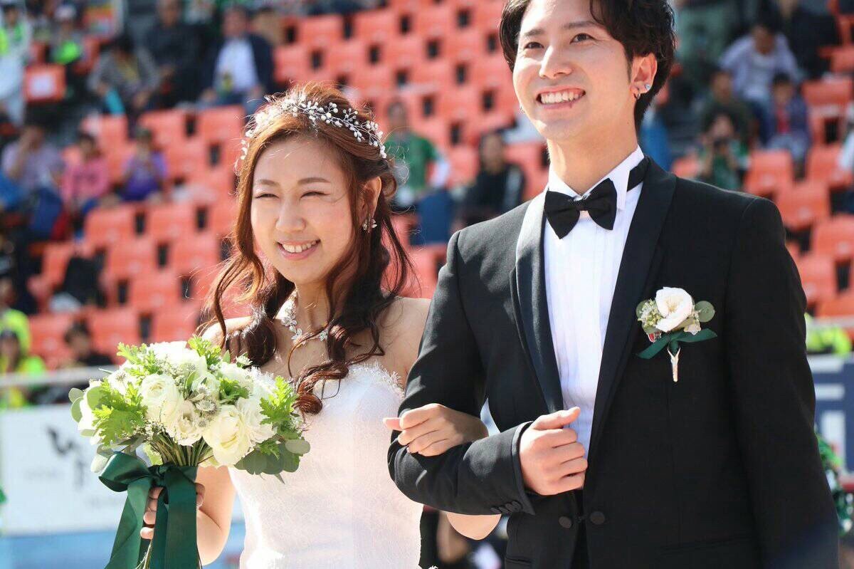 スタジアム結婚式をされた新郎新婦さん、田森大己選手、福村貴幸選手と一緒に、町もお菓子まきに参加させていただきました(*´∀`)