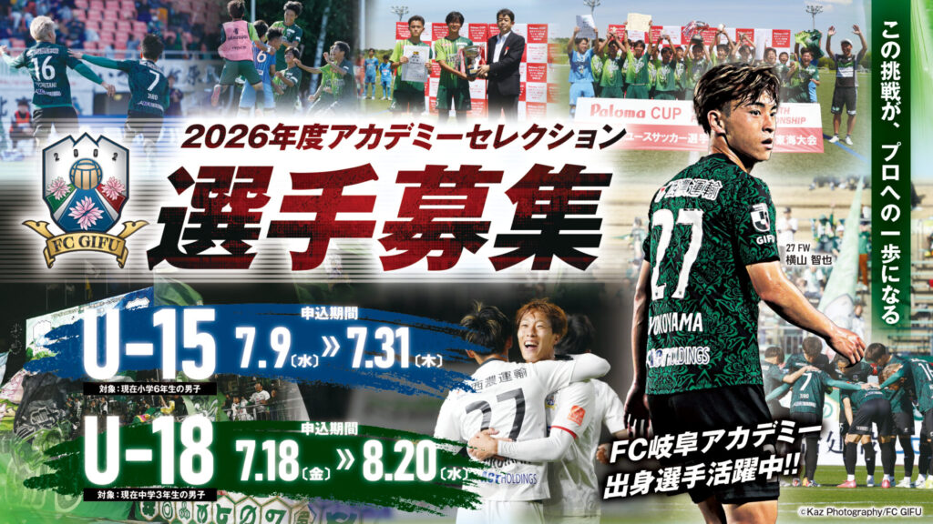 FC岐阜では、下記のとおり2026年度に向けたアカデミーグループU-18新加入選手のセレクションを実施いたします。