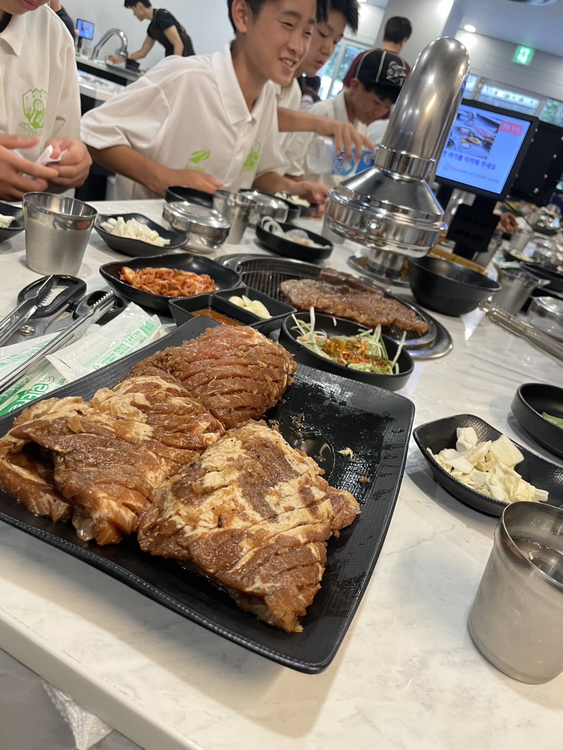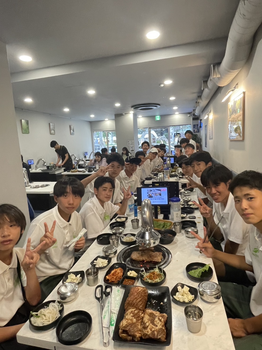 今日も夕食はみんなで焼肉をで食べ、試合の振り返りなどを行いました。