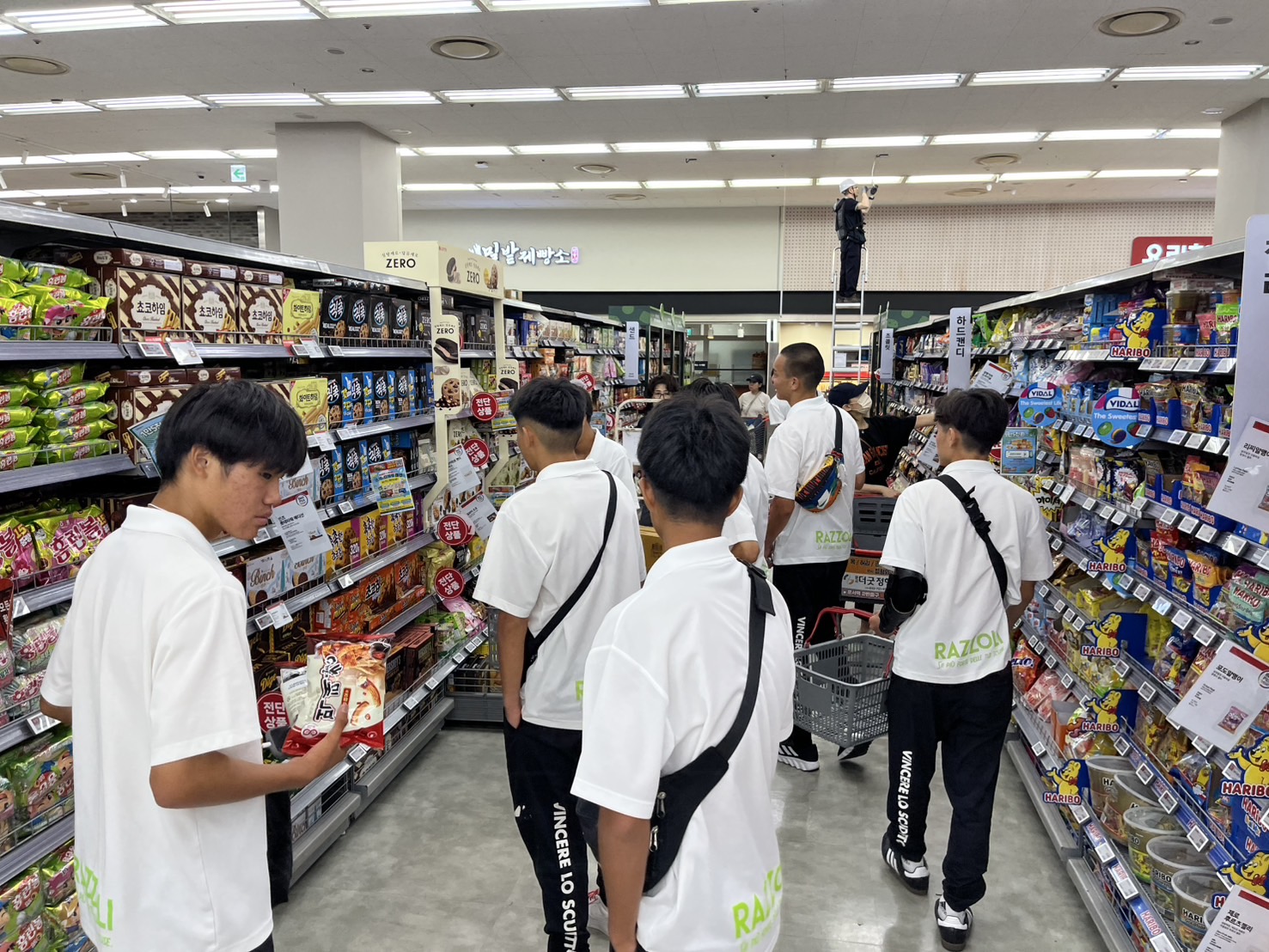 空港に向かう途中にロッテマートに立ち寄り、家族や友人にお土産を選んでいました。