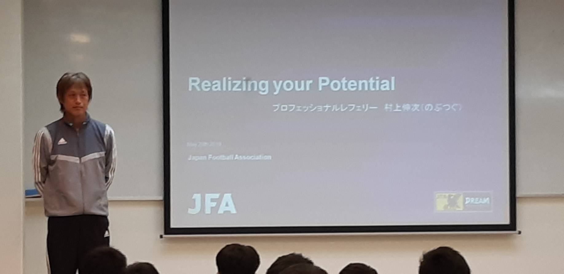5月28日(火)FC岐阜アカデミーの選手を対象に、JFAプロフェッショナルレフェリーの村上伸次さんを講師としてお招きし、審判講習会をおこないました。