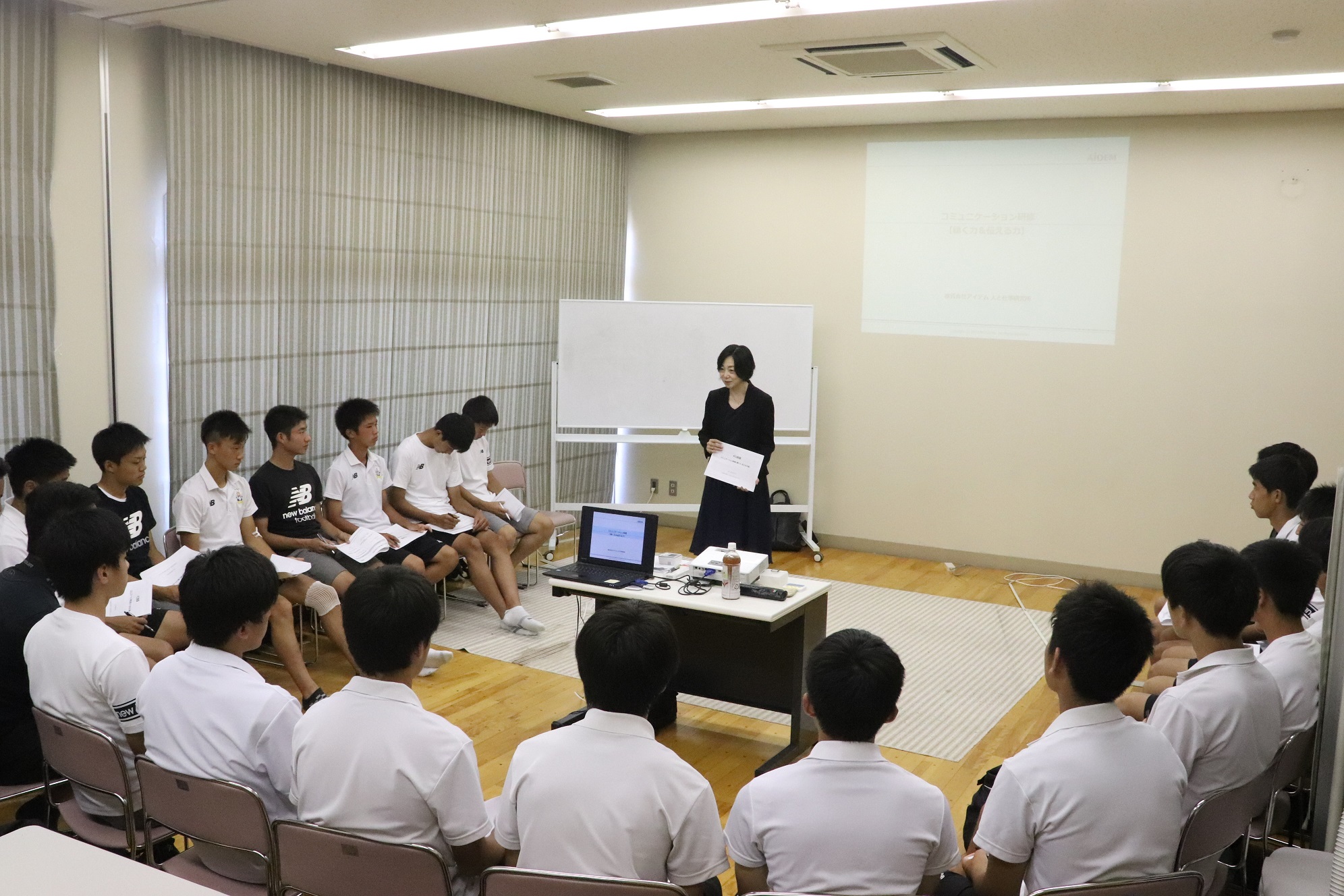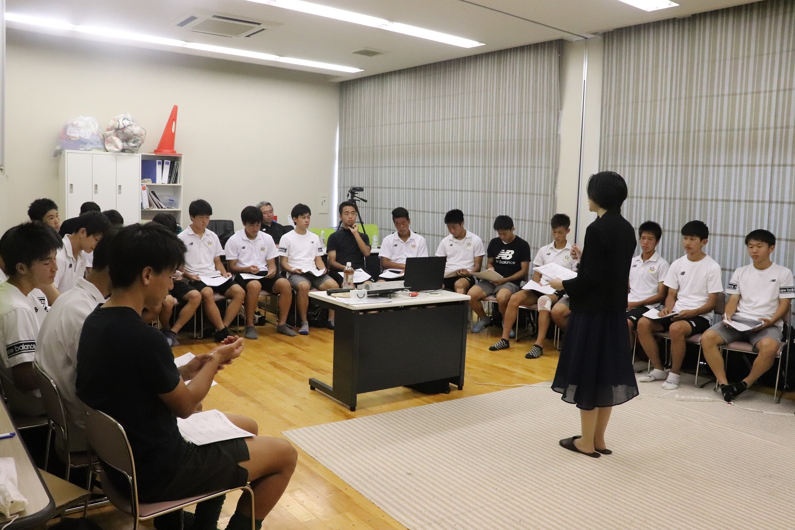 8月7日(水)に笠松町スポーツ交流館にて、ビジネスマナーインストラクターの佐藤三佳さんをお招きして、FC岐阜U-18を対象としたコミュニケーション研修(聴く力 伝える力編)をおこないました。