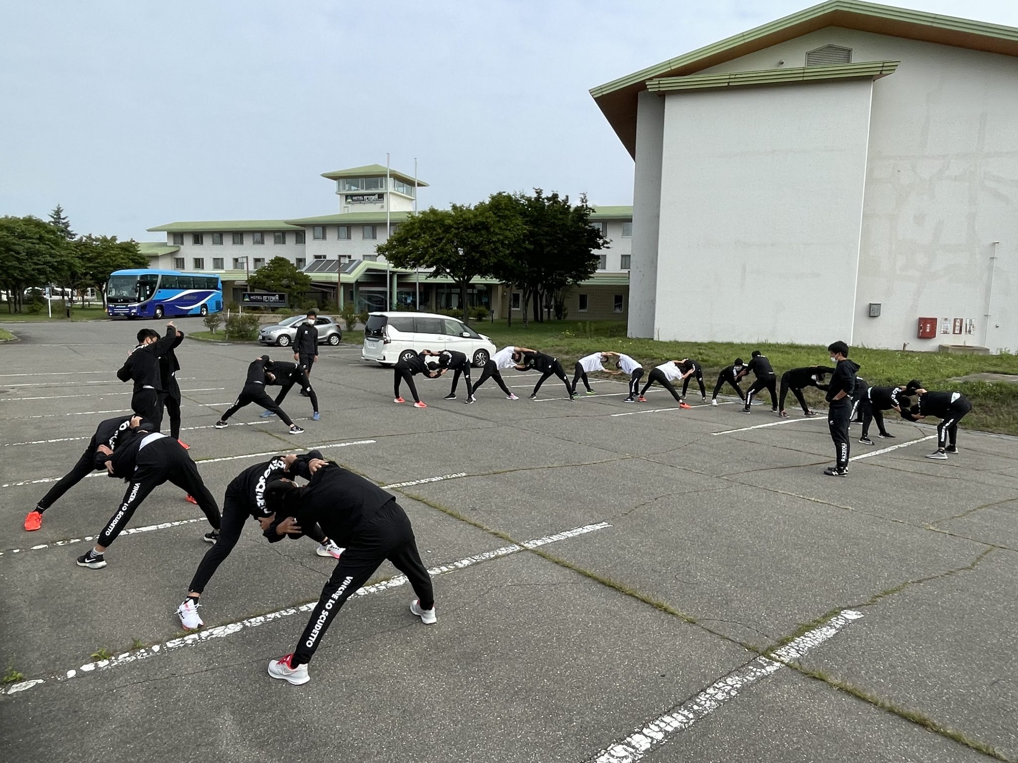 全員でしっかりとストレッチを行い、今日の試合に向けて体を起こしていきます。
