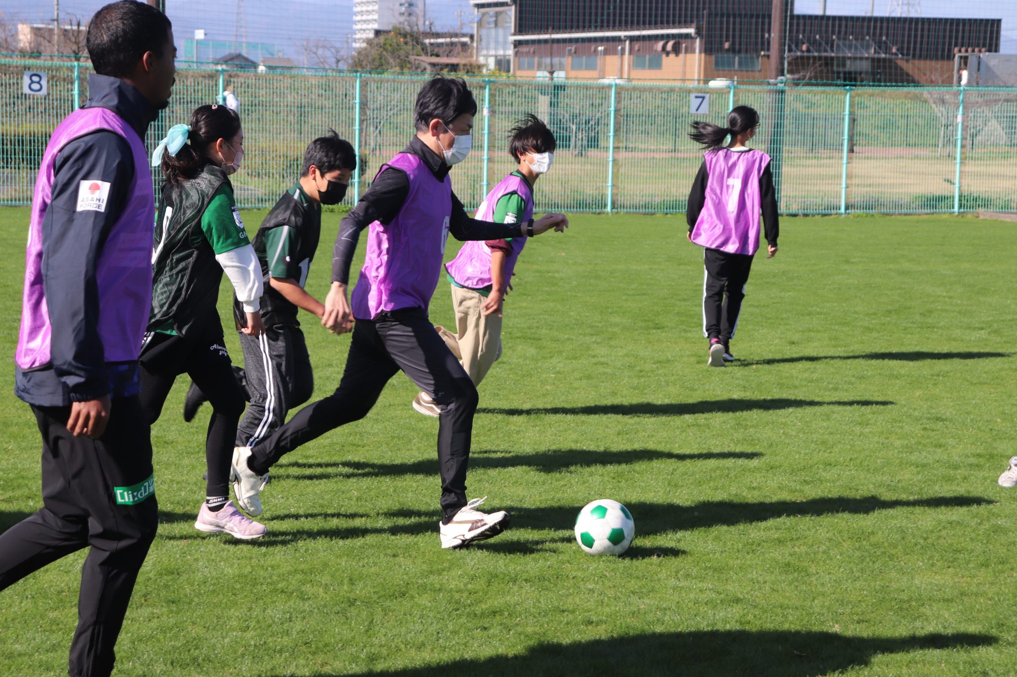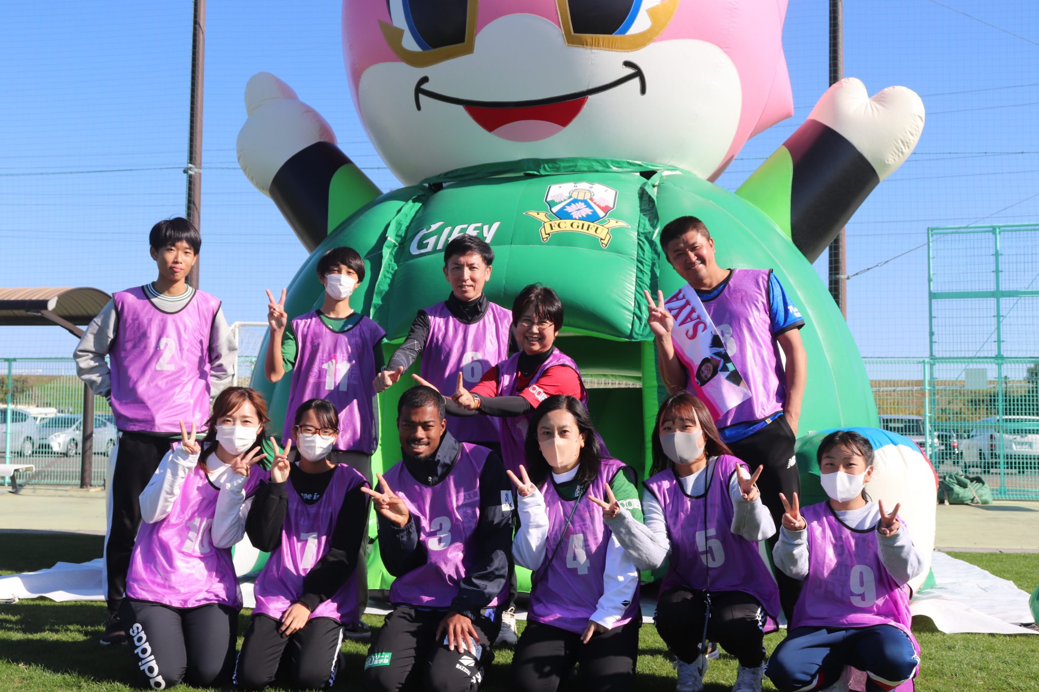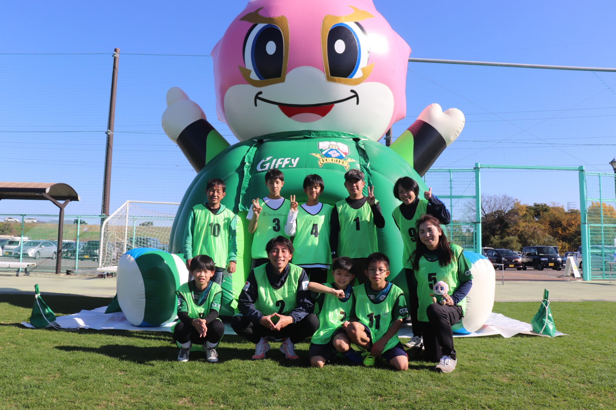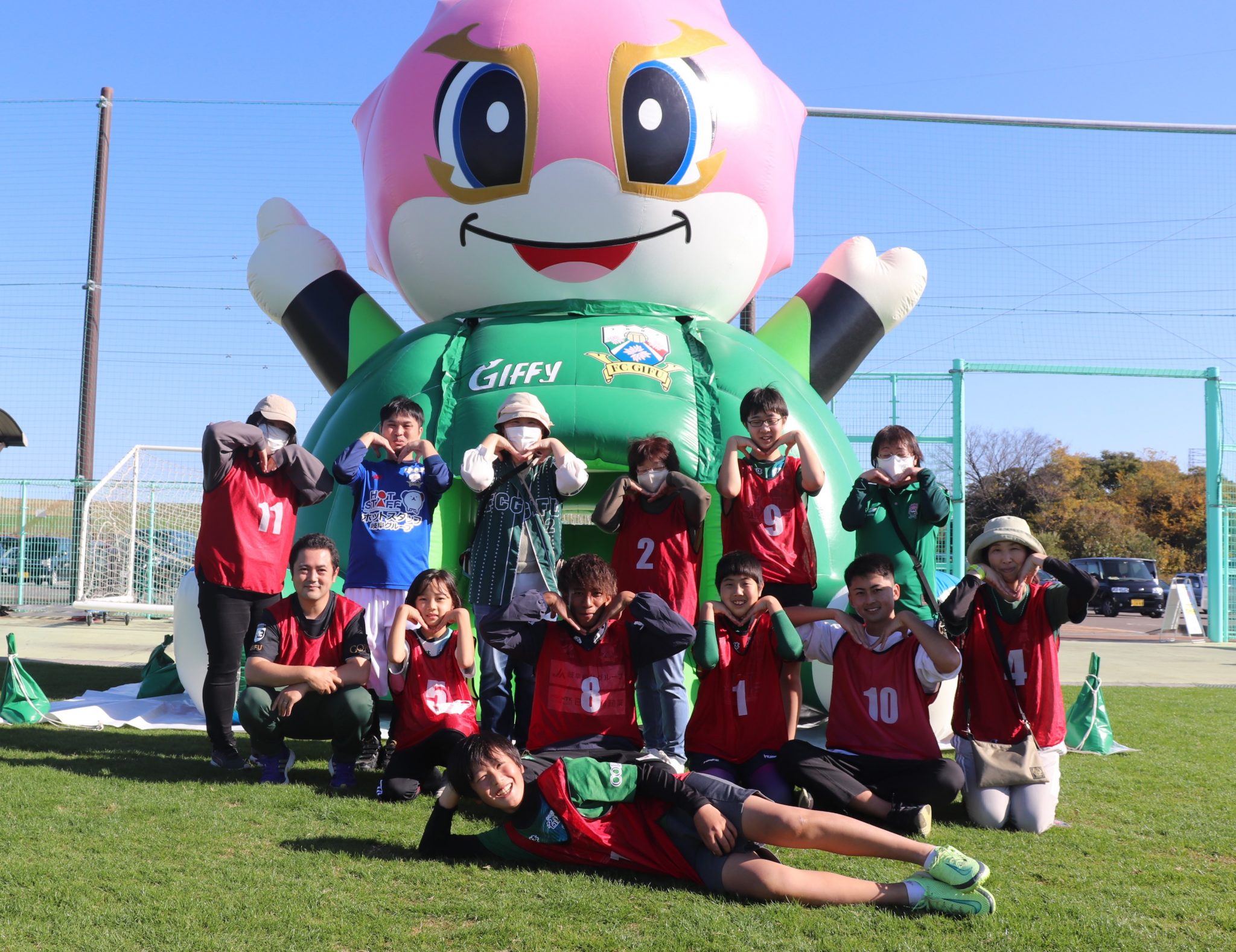 各チームに選手やギッフィーが入りサッカー交流がスタートしました!