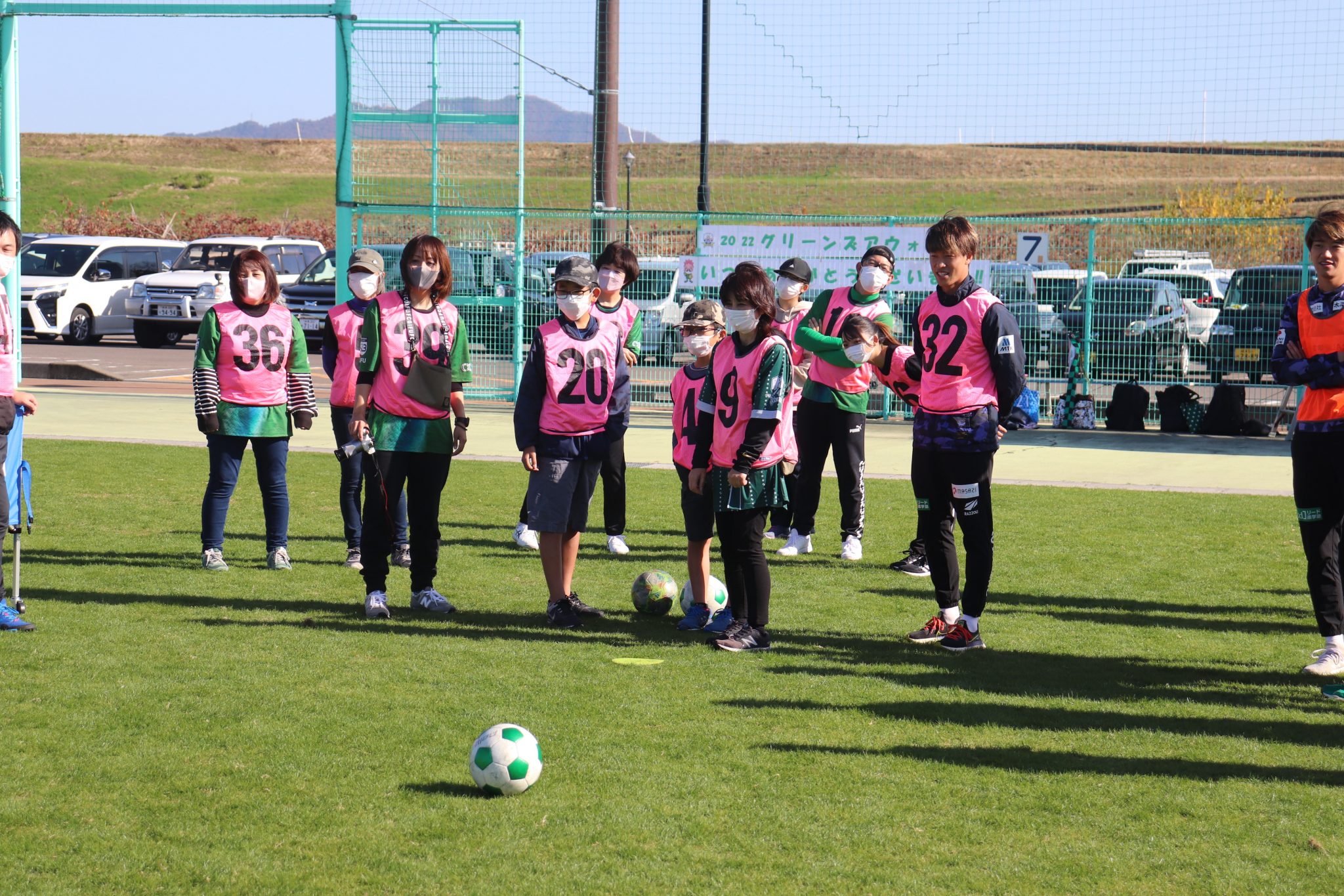 当日は北西部運動公園にてグリーンズの皆様と、選手・スタッフが参加し7チームに分かれてサッカー交流を行いました。
