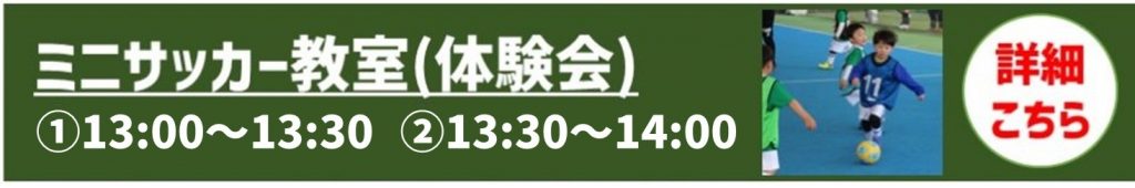 ・ミニサッカー教室中にお買い物等は可能ですが、終了時間にお戻りください。