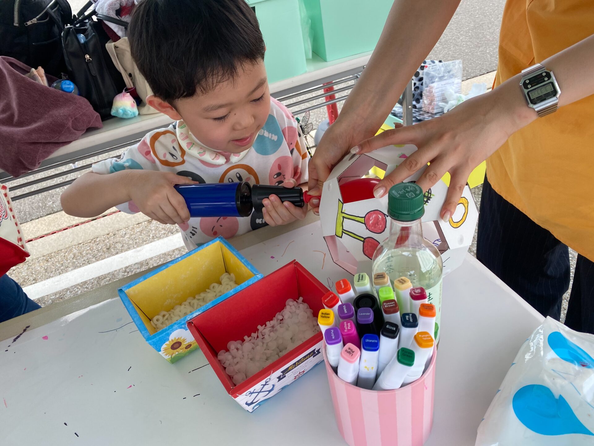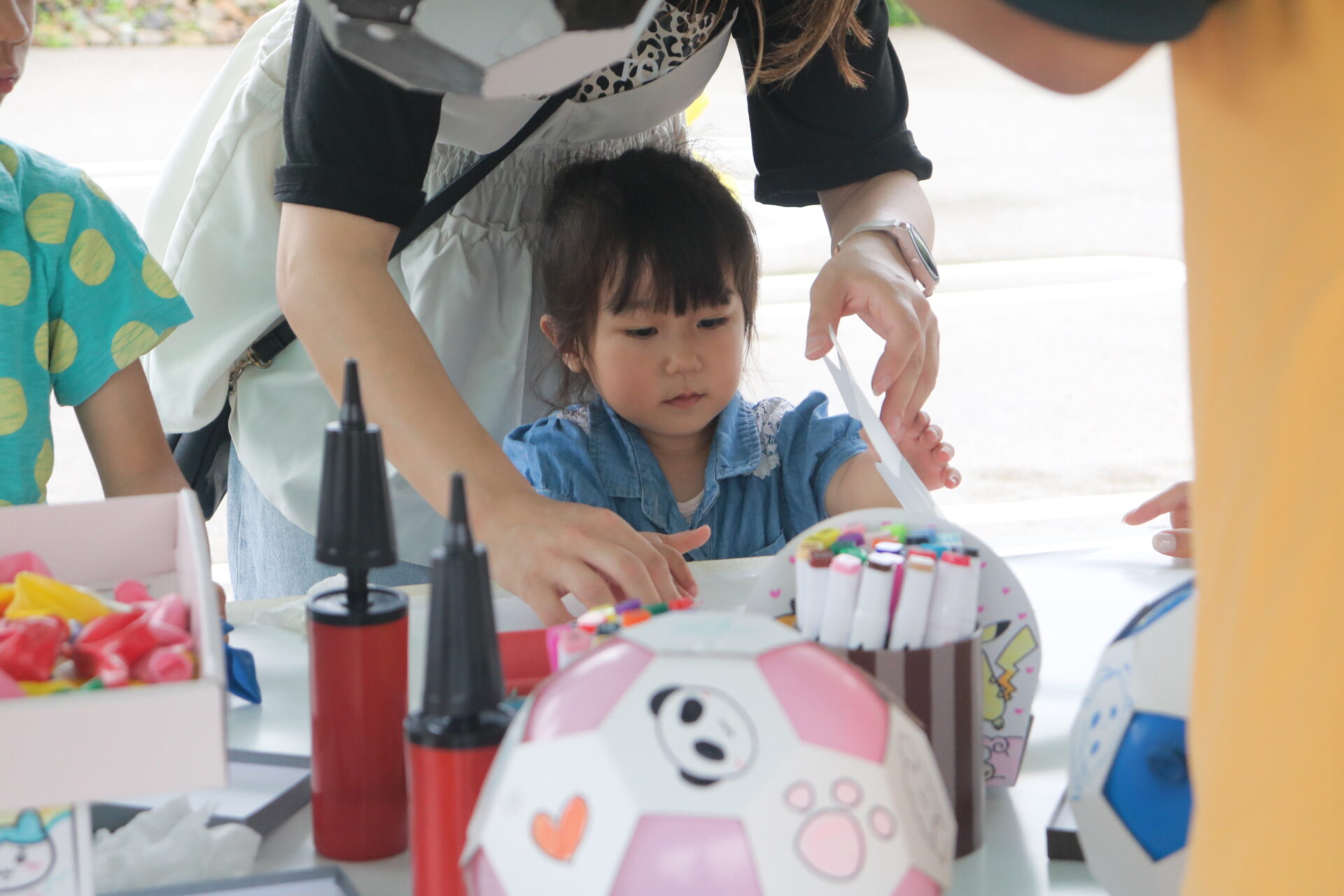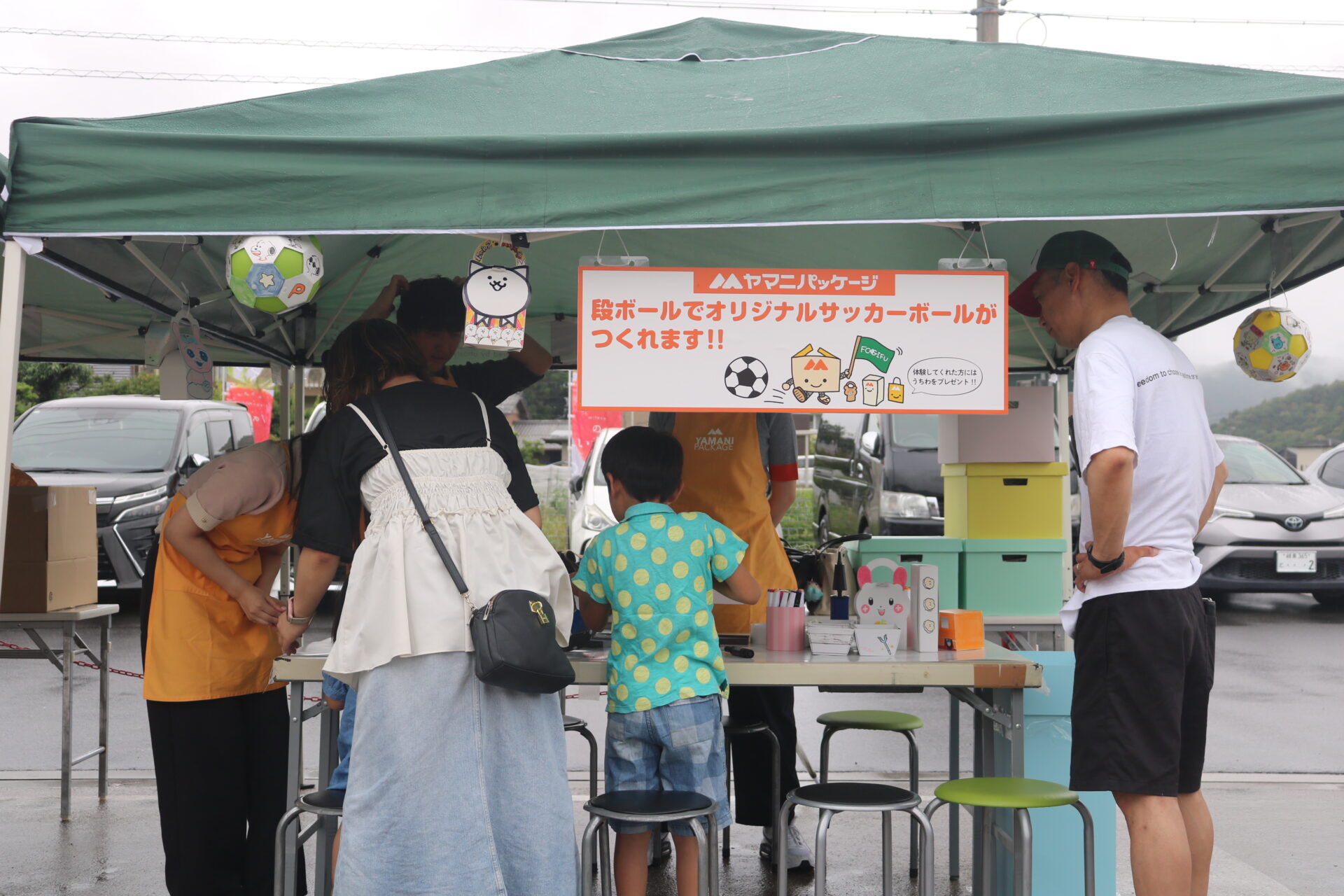 段ボールと風船でオリジナルサッカーボールを作ったり、トレーなど便利なグッズも作れたり、ものづくり体験ブースを出店いただきました!自分だけのイラストを描いて、実際に蹴って遊ぶこともできました!