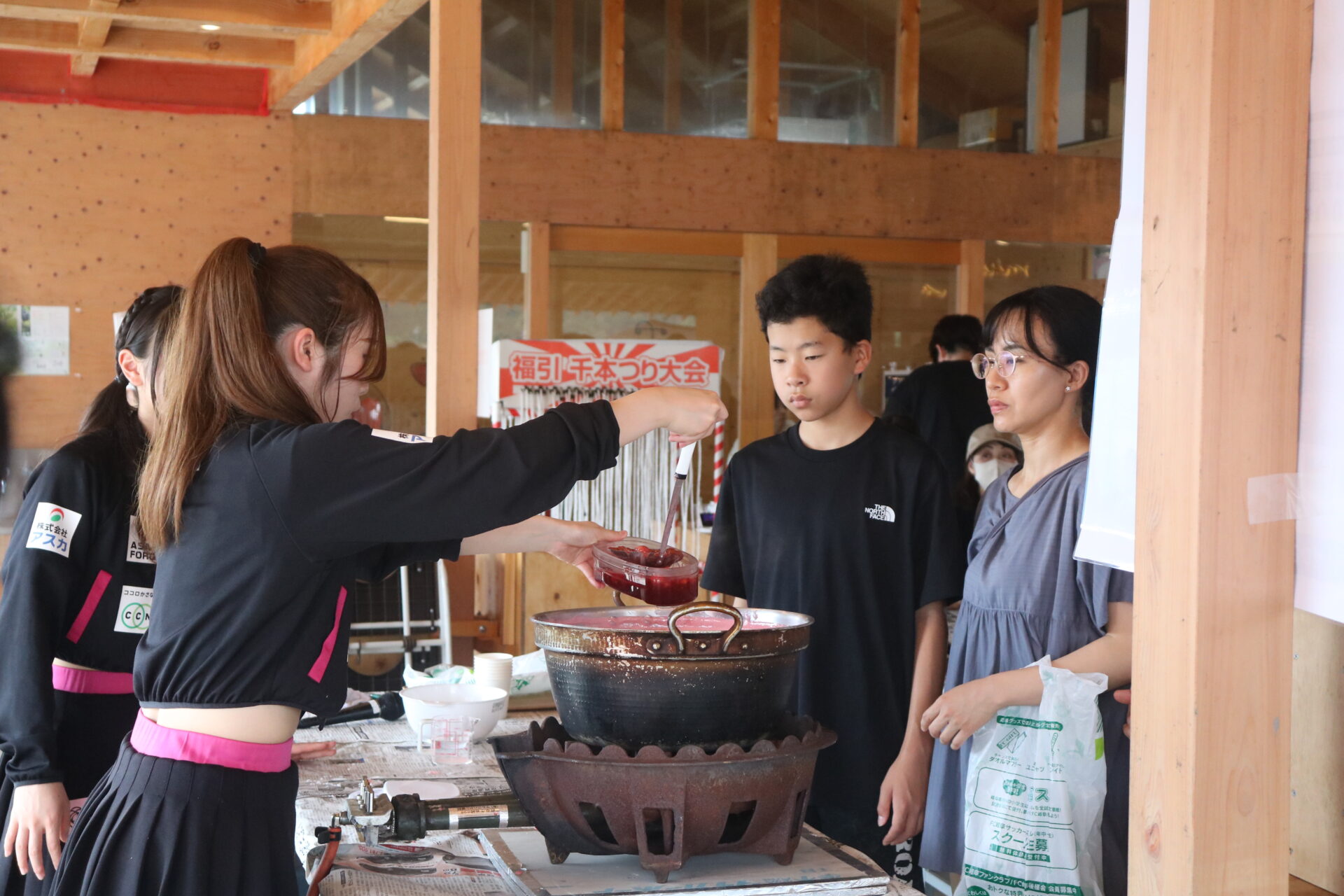 大きな鍋で煮詰めていきます!!みんなで焦げないように混ぜ混ぜ…