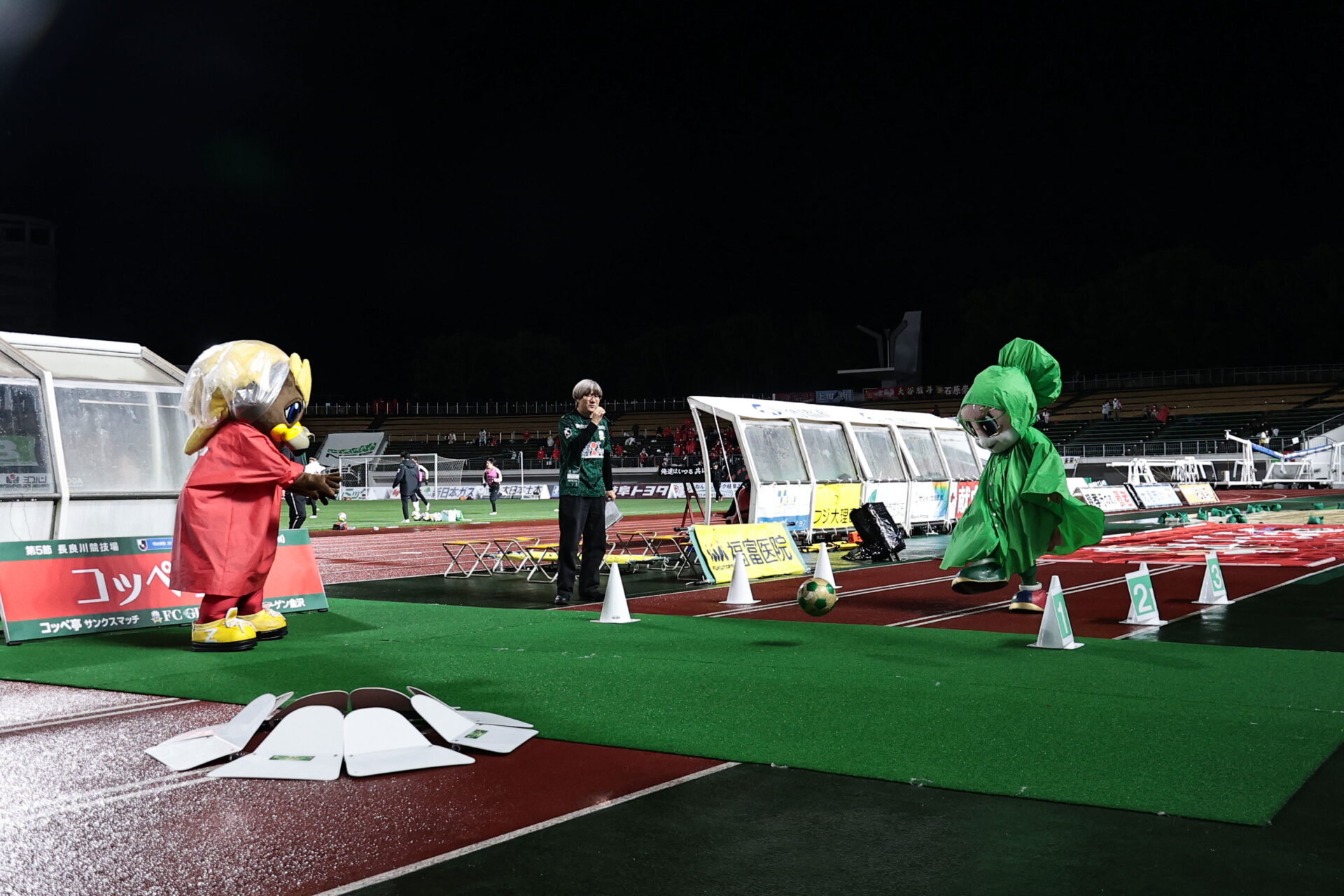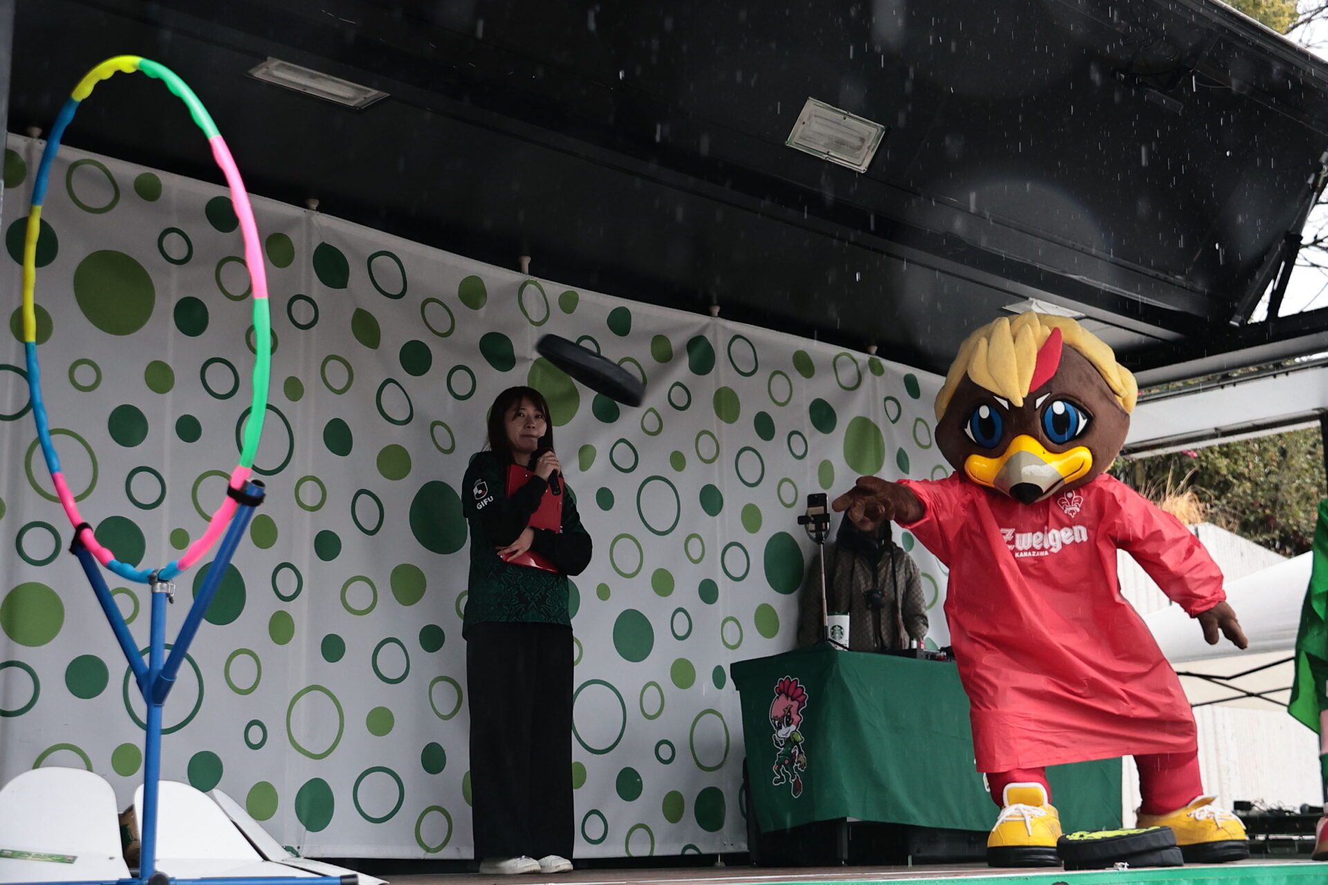 「ギッフィー」とツエーゲン金沢公式マスコット「ゲンゾー」、両クラブサポーターが参加して「マスコット追っかけ玉入れ」対決を行います!