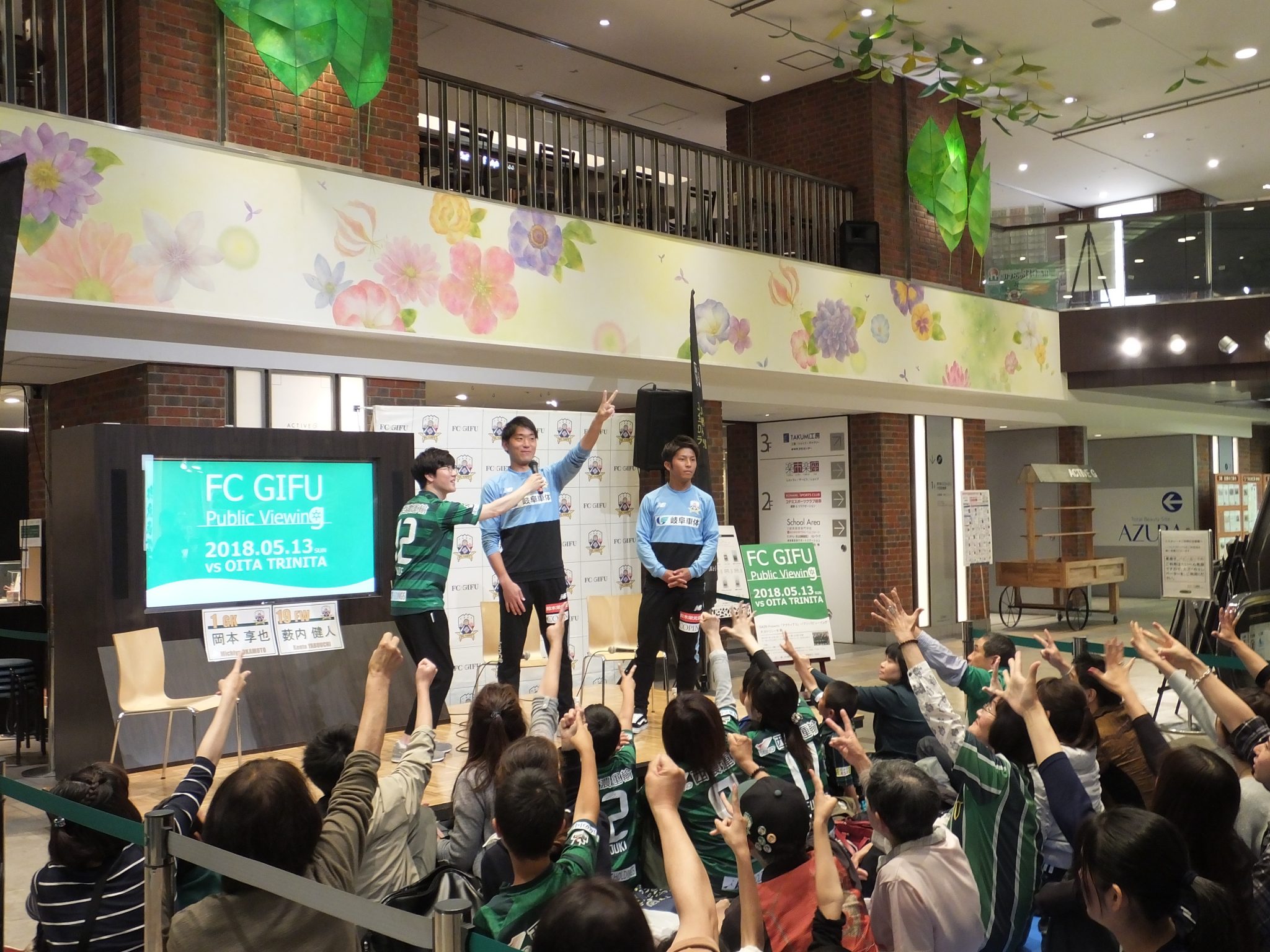 5月13日(日)に岐阜市のアクティブGにて、大分トリニータvsFC岐阜のパブリックビューイングが開催されました。会場には多くのファン・サポーターの皆さんにお集まりいただき、アウェイ大分で戦うFC岐阜に熱い声援が送られました。
