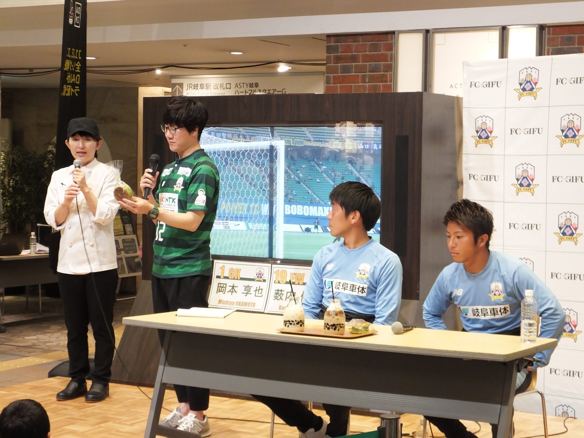 また、FC岐阜のスタジアムDJ久世良輔さん、岡本享也選手と薮内健人選手も参加してイベントを盛り上げました。