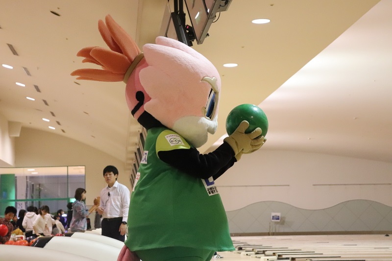 ギッフィーの始球式でボウリング大会をスタート!