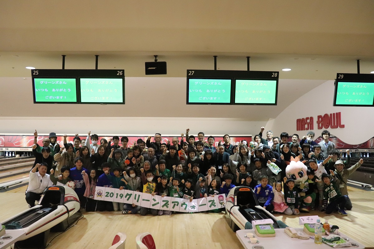 当日は、マーサボウル様にご協力をいただき、グリーンズの皆様と、選手・スタッフがボウリングにて交流を行いました。