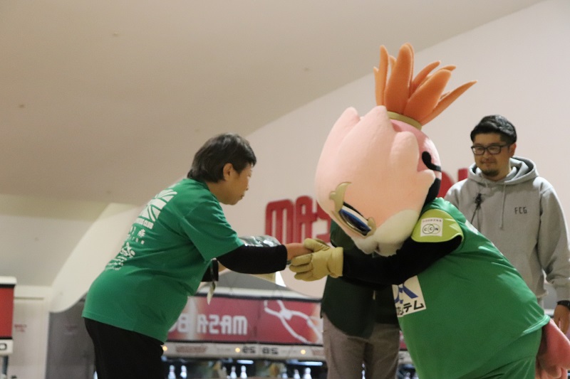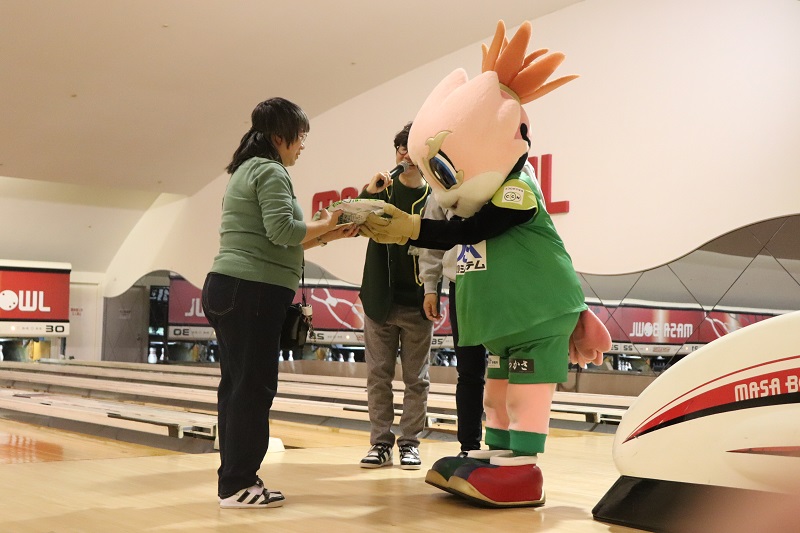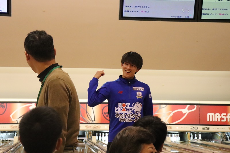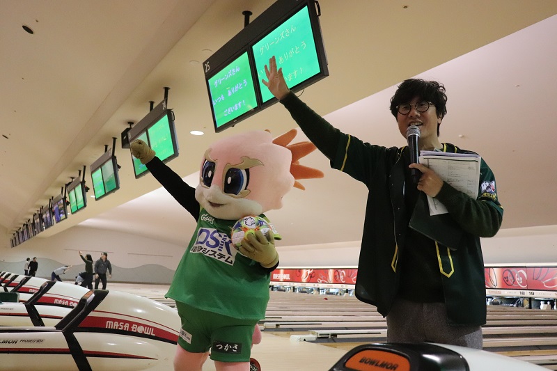 ストライクやスペアが出るとグリーンズの皆さんと選手たちが自然とハイタッチを行ったりと、大変盛り上がりました。