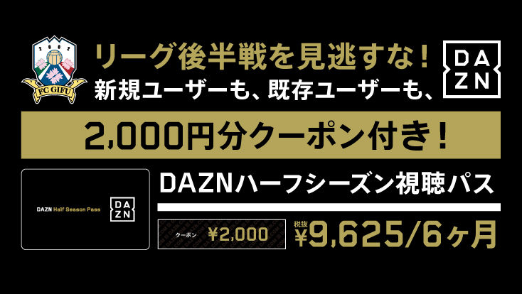 「DAZNハーフシーズン視聴パス」のご購入金額の一部は、FC岐阜の強化費用として還元されます。