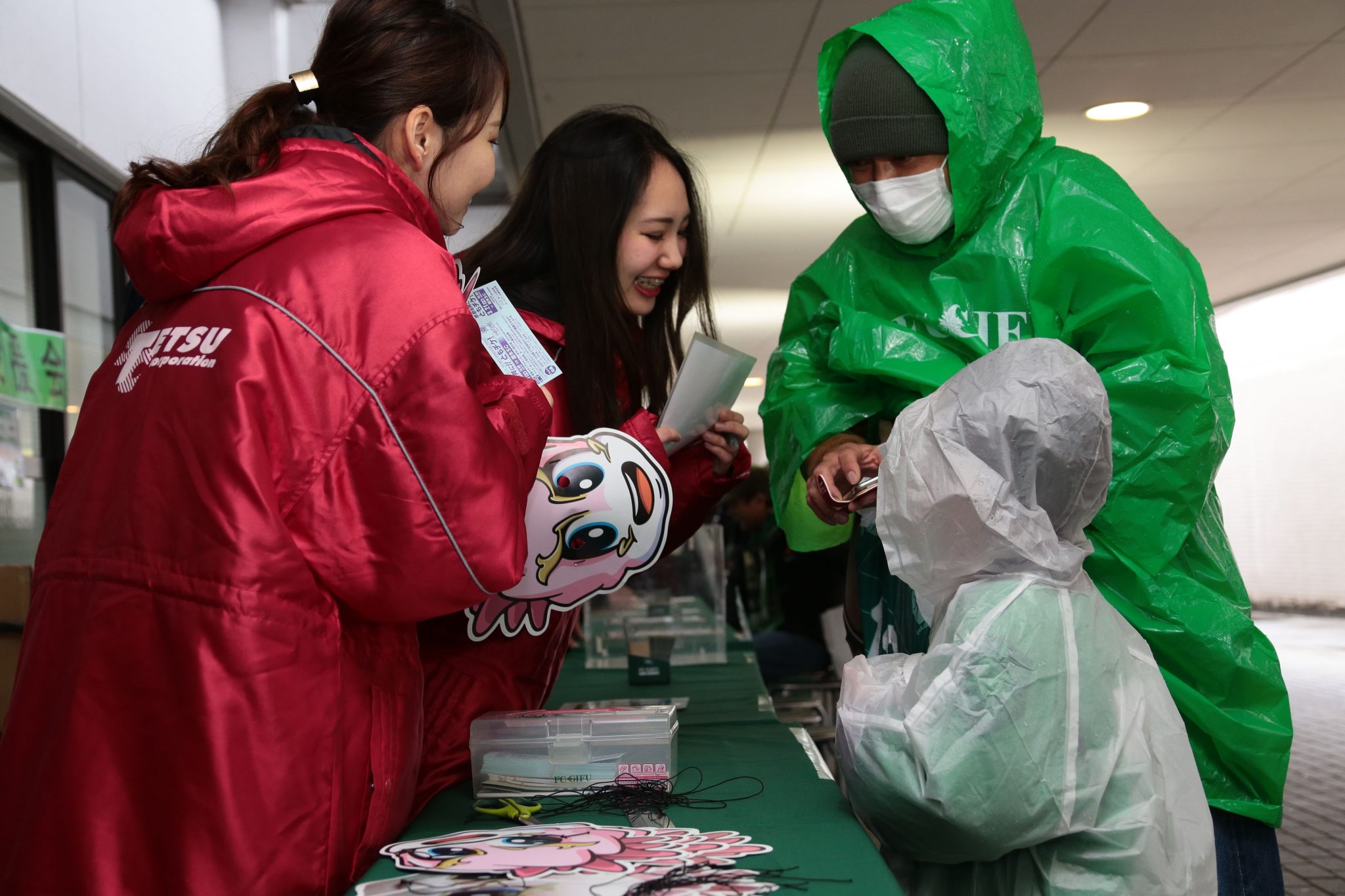 3月3日の横浜FC戦で配布した企画チラシを持って、お友達を誘って来場してくれた方に、ギッフィーのリバーシブルお面をプレゼントしました!
