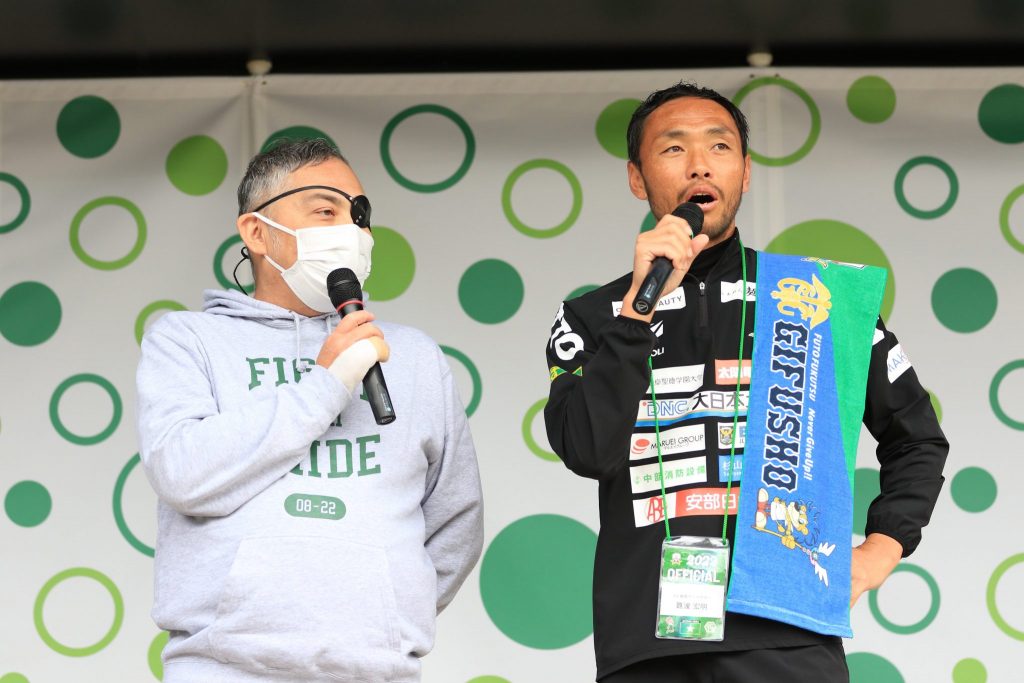最後に今シーズン限りで現役引退を発表しました舩津徹也選手、本田拓也選手よりご挨拶を申し上げました。