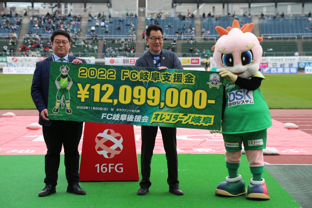 FC岐阜後援会(オレンターノ岐阜)から(株)岐阜フットボールクラブへ 12,099,000円のご支援をいただきました。